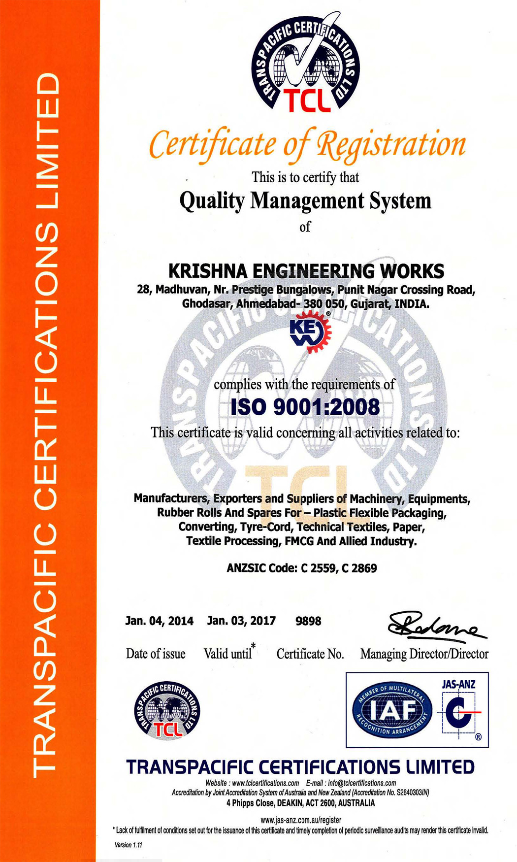 Krishna Engineering Works is a company incorporated by experts having vast experience of 25 years in the Engineering industries of Plastic Packaging - Converting, Textile Processing and Tyre - Cord machineries. Our founders have a deep technical & marketing knowledge in these industries. The company takes regular participation in national, international conference, exhibitions, etc. to continuously update itself with latest technological advances and make available to the market our latest products.